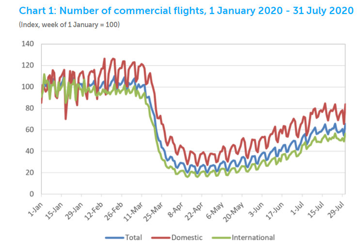 Відзначається, що в найглибшій депресії знаходяться вантажні авіаперевезення (індекс 76,5), автовиробництво (індекс 71,8) та контейнерні перевезення (індекс 86,9). Водночас, експортні замовлення (індекс 88,4) попри історичне падіння почали стабілізуватися.
