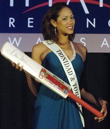 12. міс Тринідад і Тобаго Тенеке де Фрейтас під час збору коштів для найстарішого дитячого будинку у Варшаві, учасниці представили на аукціон предмети, що характеризують їхні національні культури