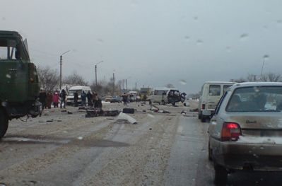 За попередніми даними, водій мікроавтобуса допустив виїзд на зустрічну смугу, де й сталося зіткнення. Після удару мікроавтобус розвернувся і вдарився об причеп цього ж вантажного автомобіля. В результаті ДТП троє жінок – пасажирки мікроавтобуса – загинули на місці, ще одна особа померла у медичному закладі. 17 постраждалих, які отримали тілесні ушкодження різних ступенів тяжкості, були доправлені до лікарні.