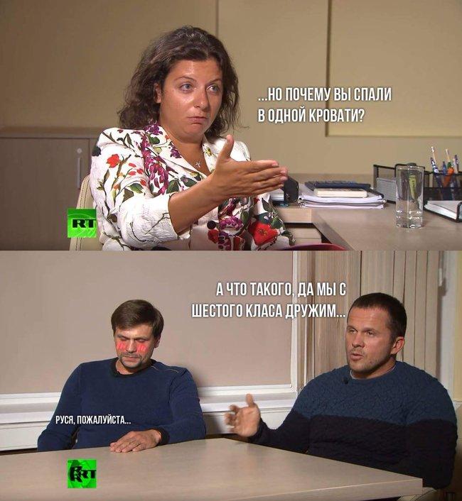 Олександр Петров і Руслан Боширов, підозрювані Британією в отруєнні Сергія Скрипаля та його доньки Юлії, дали інтерв'ю головному редактору пропагандистського російського каналу RT Маргариті Симон'ян.