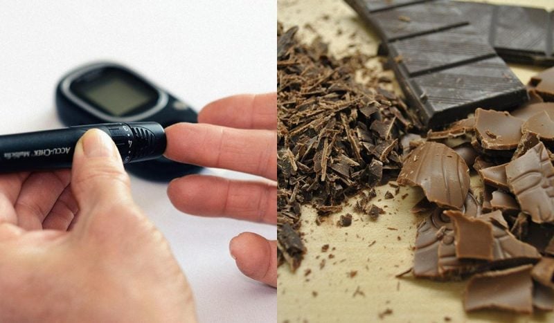 Дослідження показують, що у людей з діабетом 2 типу рівень цукру в крові натщесерце покращувався після вживання темного шоколаду та/або какао. В статті вказується, що хоча потрібно провести ще додаткові дослідження, але є припущення, що вміст поліфенолів поліпшив функцію ендотелію, що дозволило більш ефективно виводити глюкозу з крові в клітини.