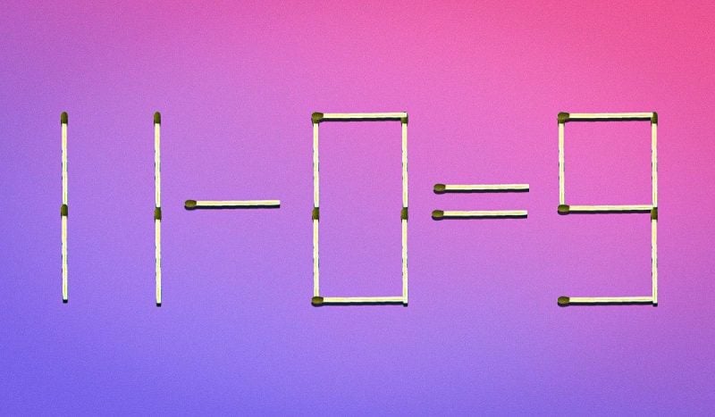 Перед вами - неправильне рівняння: 11-0=9. Воно побудоване із 19 сірників. Вам потрібно перекласти всього один сірник в інше місце - і рівняння стане правильним.