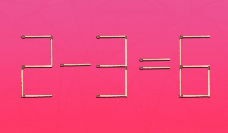 Нижче перед вами буде зображення, на якому за допомогою сірників викладено математичне рівняння 2-3=6. Очевидно, що цей вираз не є правильним.