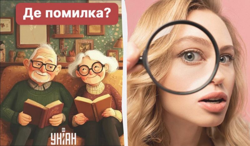 Ви побачите малюнок, на якому зображене літнє подружжя, що читає книги у вітальні. Здавалося б, це ідеальний вечір, і все йде як слід. Але щось на цьому зображенні не так. Ваше завдання – виявити цю помилку.