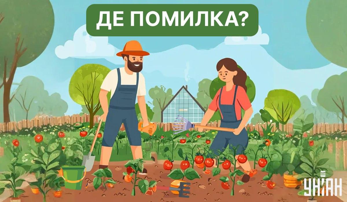 Цього разу представляємо вам доволі просту головоломку з хибою. Ви маєте уважно подивитися на город, де працюють двоє людей, та вказати на дивну деталь.