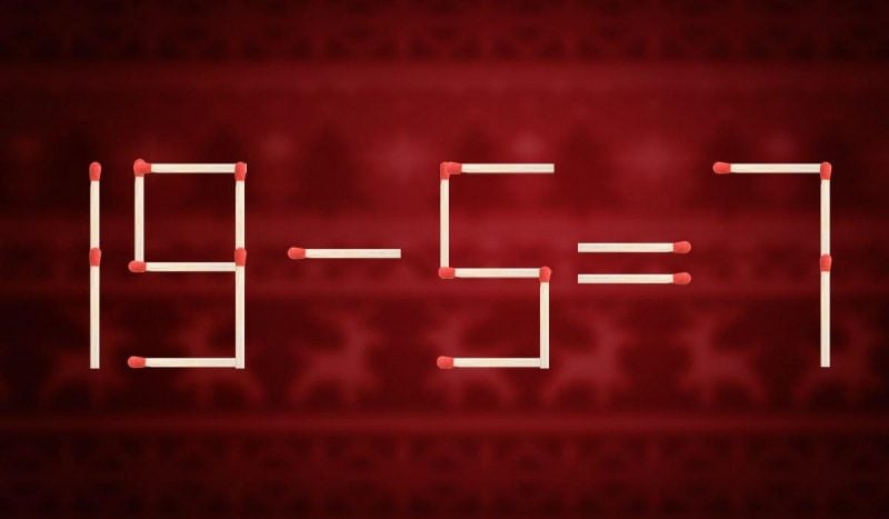 Отже, пропонуємо вам неправильну рівність 19 - 5 = 7, складену з 19 сірників. Ви повинні перемістити один сірник, щоб рівність стала правильна. Зверніть увагу, що пошук відповіді обмежений часом - у вас є всього 9 секунд. І не засмучуйтеся, якщо розв'язати головоломку вам не вдалося.