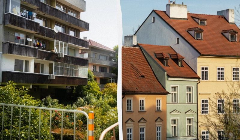У Празі та Чехії в цілому можна виділити три основні типи житлових будівель: сучасні, радянські та історичні (дорадянські). Розглянемо кожен варіант по черзі.