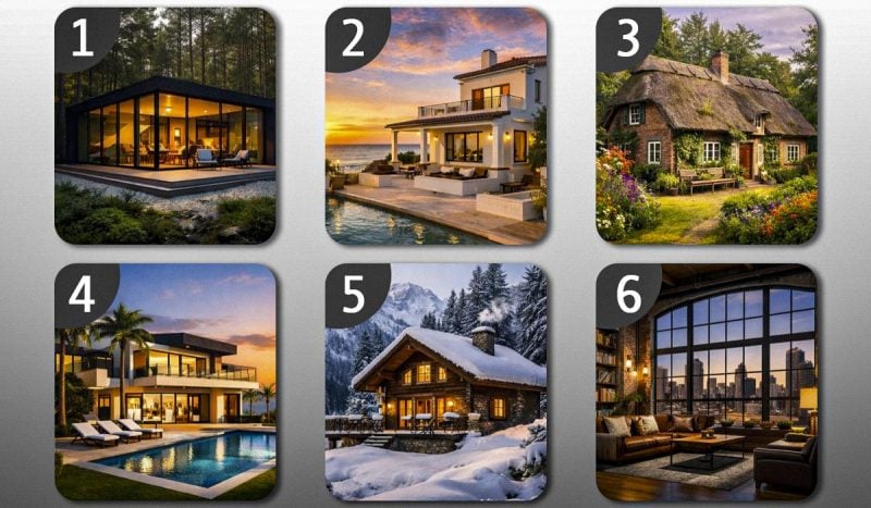 Цей тест базується на виборі будинку і вважається особливо точним. Адже за житлом людини можна визначити, якою особистістю вона є. Розгляньте шість зображень вілл і подумайте, в якій хотіли б жити найбільше.