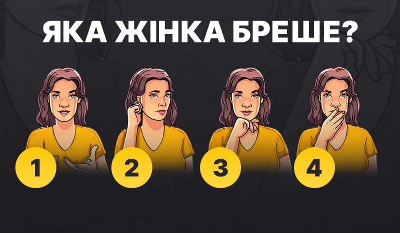 Мова тіла може багато чого сказати про людину і видати її брехню, навіть якщо зі слів це не помітно. Перевірте, наскільки ви спостережливі та чи добре розумієте невербальні знаки. Подивіться на картинку і подумайте, яка з жінок бреше співрозмовнику. Цей тест на логіку й уважність пройдуть небагато людей.