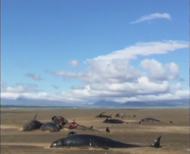 На берег ісландського півострова Снайфедльснес викинуло 50 чорних дельфінів, також відомих як грінди.