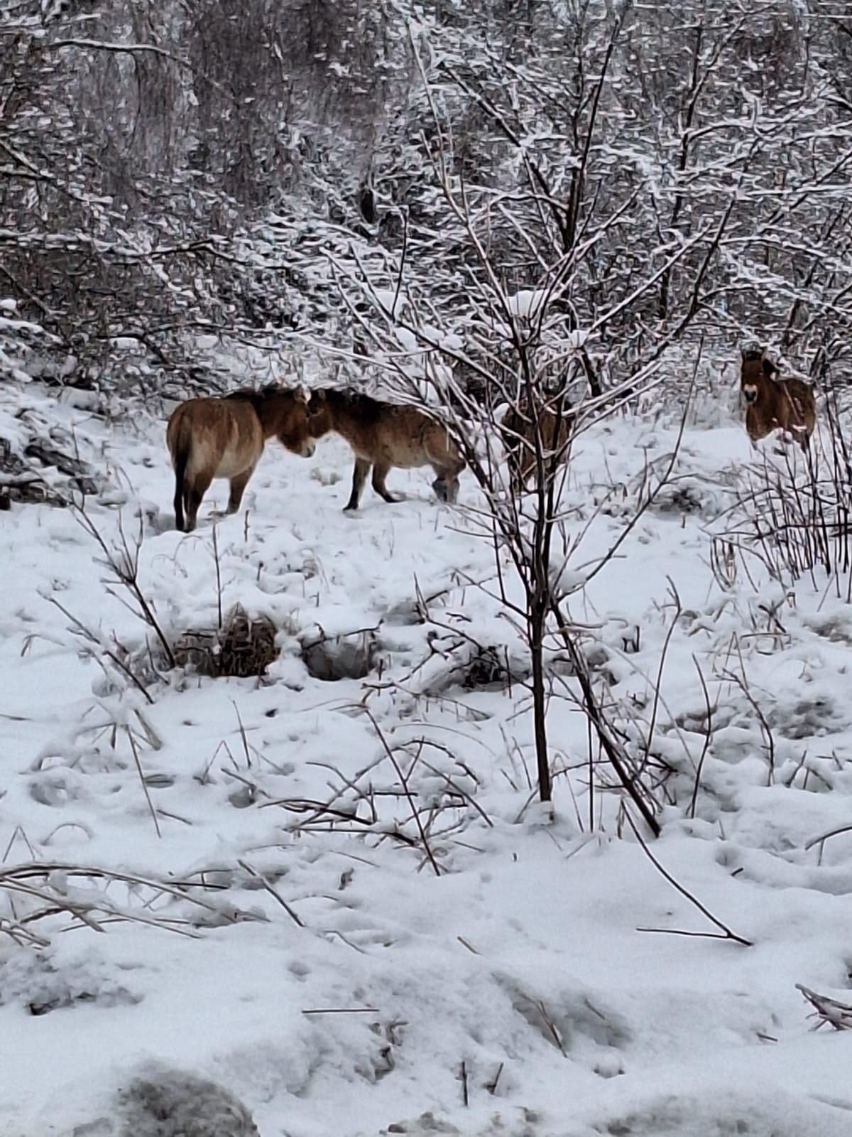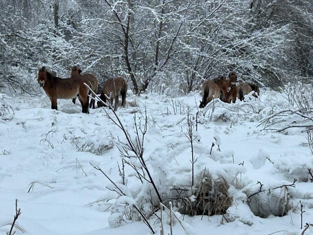 У Чорнобильському радіаційно-екологічному біосферному заповіднику фахівці зафіксували у засніжених хащах різних тварин, серед яких – коні Пржевальського, вовки та лосі.