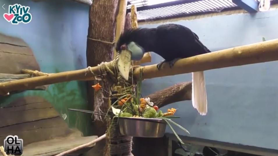 У Київському зоопарку до свята весни тварин нагодували спеціальними фруктовими букетами.