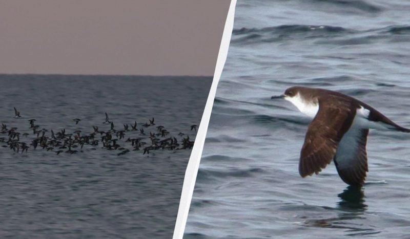 "І ось настає час сходу сонця...05:55. Все навколо вже добре видно... Прямо на світанку над морем з 06:00 годин починають мандрувати чудові птахи моря - малі буревісники (Puffinus puffinus) - зі сходу на захід, на відстані десь 150-200 м від берега. Загалом їх прилітає за одну годину декілька тисяч", - розповів Русєв.