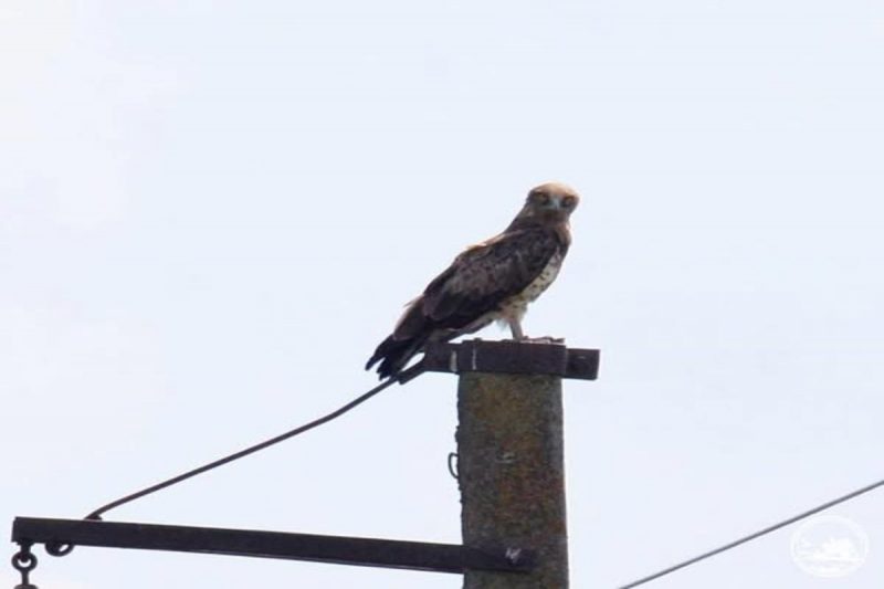 "Змієїди вже активно полюють і переміщуються по своїх мисливських територіях. Інколи відпочивають на лініях електропередач, що слугують зручними оглядовими точками. Один із таких птахів був помічений поблизу с. Діброва, але, щойно під’їхало авто, він одразу перелетів - тому фото, як то кажуть, не з кращих", - зазначили дослідники.