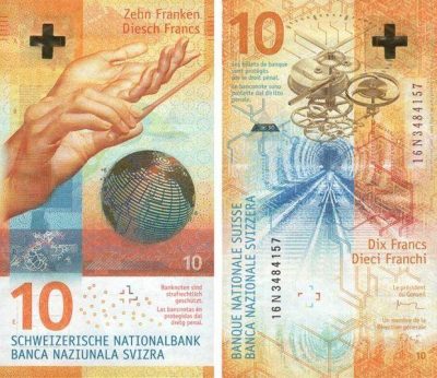 Швейцарська купюра в 10 франків визнана найкрасивішою банкнотою року в 2017 році.