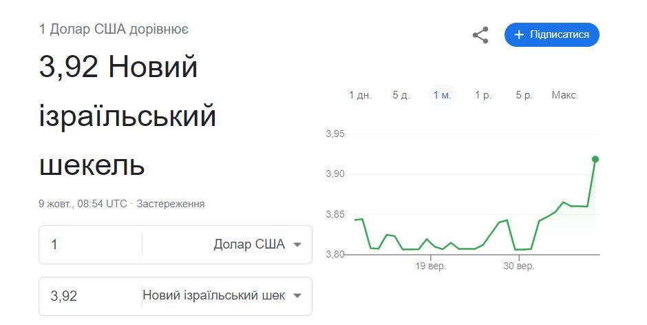 На тлі нападу бойовиків ХАМАС на Ізраїль та ескалації конфлікту на Близькому Сході ізраїльський шекель впав до майже восьмирічного мінімуму по відношенню до долара США.