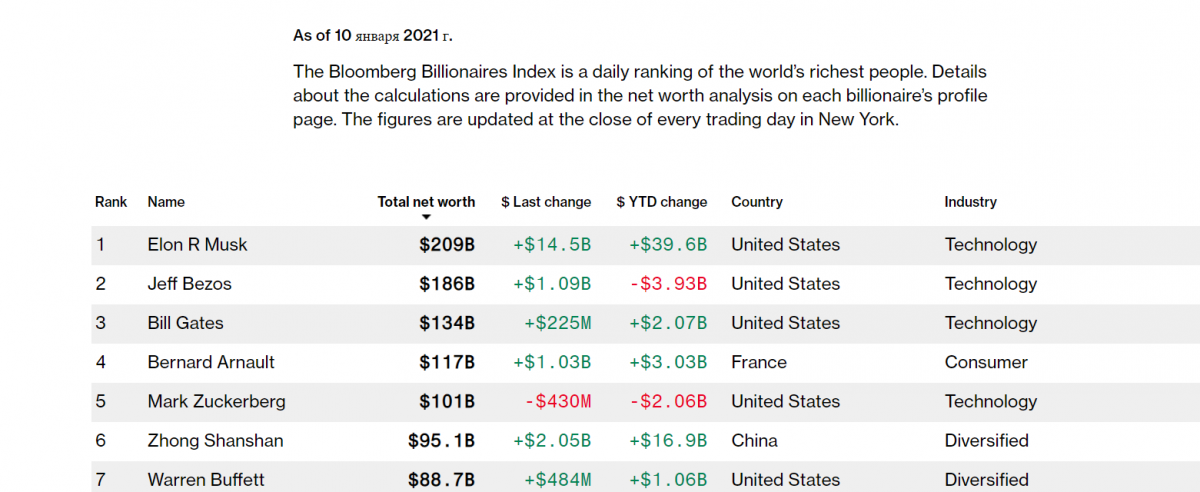 Станом на 9 січня його статки становили 209 мільярдів доларів.