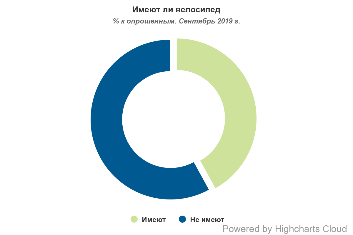 Власників велосипедів в Україні майже вдвічі менше, ніж тих, хто вміє їздити на велосипеді. В даний час 42% жителів країни володіють велосипедами. Не мають велосипедів – 58%.