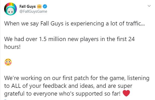 В багатокористувацьку гру Fall Guys: Ultimate Knockout в першу добу після релізу зіграло 1,5 мільйона осіб.