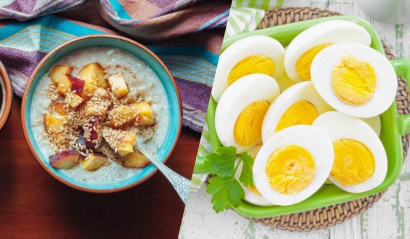 Два великі яйця містять близько 12,6 г білка і 1,12 г вуглеводів, тоді як 1 склянка вівсянки на воді містить удвічі менше білка і близько 28 г вуглеводів, як встановили дослідження.