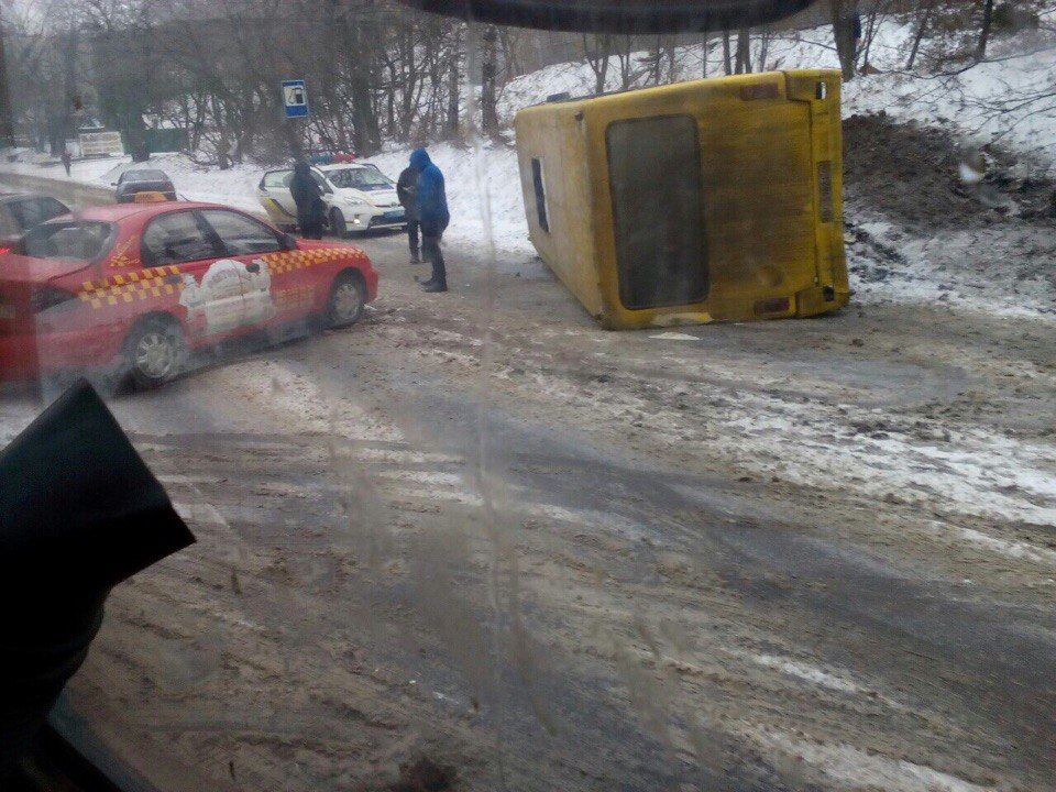 Ймовірною причиною ДТП стала слизька дорога на якій занесло водія «Daewoo Lanos». Водій автобуса, намагаючись уникнути зіткнення з некерованим авто, наїхав на бордюр, від чого маршрутка перекинулася на бік.
