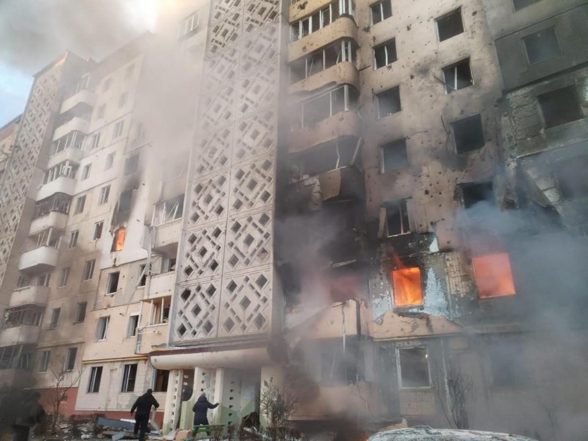"Найтяжче – у Тернополі. Пошкоджено дві житлові 9-поверхівки. В одній – пожежа, в іншій – руйнування з 3-го по 9-й поверхи. Станом на 10:00: десятеро загиблих, 37 поранених, з яких 12 – діти", - розповів міністр. .