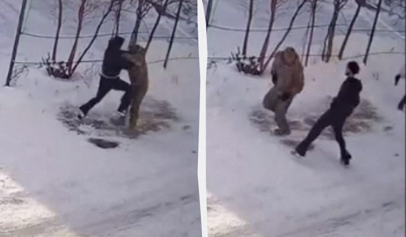 Також видно, як чоловік у темному одязі (мабуть, саме Данило Колесник) підбігає до групи чоловіків у військовій формі. Попри погану якість відео, все ж можна розібрати, як один з військових дійсно активно атакує руками Колесника, що і переростає в бійку.