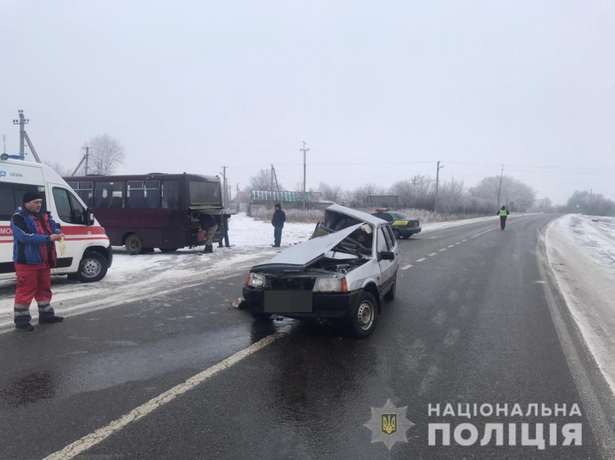 На Харківщині водій легковика не впорався з керуванням, виїхав на зустрічну смугу руху та зіштовхнувся з рейсовим автобусом.