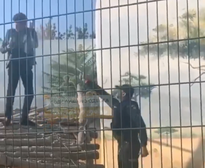Співробітники поліції охорони, що прибули на місце, побачили у вольєрі молодого чоловіка, який вів відеозйомку, перебуваючи на дерев'яному «настилі», спорудженому для тварин.