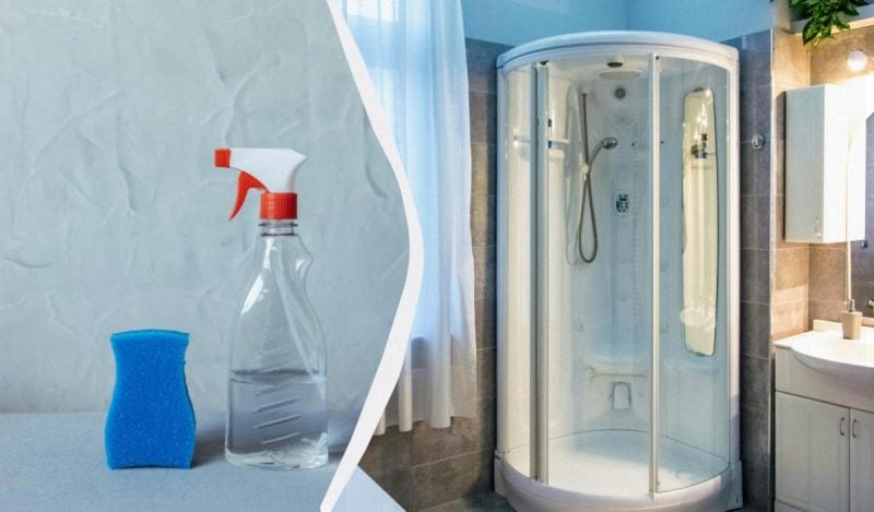 Білий оцет потрібно перелити в пульверизатор і розпорошити на двері душової кабіни, залишити на 3-5 хвилин. Зверху нанести улюблений засіб для чищення. Акуратно круговими рухами протерти двері душової кабіни, зчищаючи мильний наліт. Полити теплою водою, паралельно орудуючи губкою, щоб прибрати залишки миючого засобу і оцту. Протерти двері душової кабіни насухо серветкою з мікрофібри.