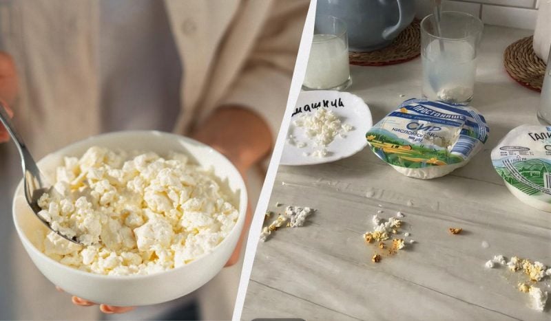 Авторка купила 6 видів сиру і порівняла їх з домашнім продуктом. Серед "випробовуваних" виявилися такі марки: "Простонаше" (завод Danone в Кременчуці), "Галичина" (Радехівський молзавод), "Хуторок" (Зміївський молзавод), (Богодухівський молзавод), а також магазинний, який продавався на вагу.