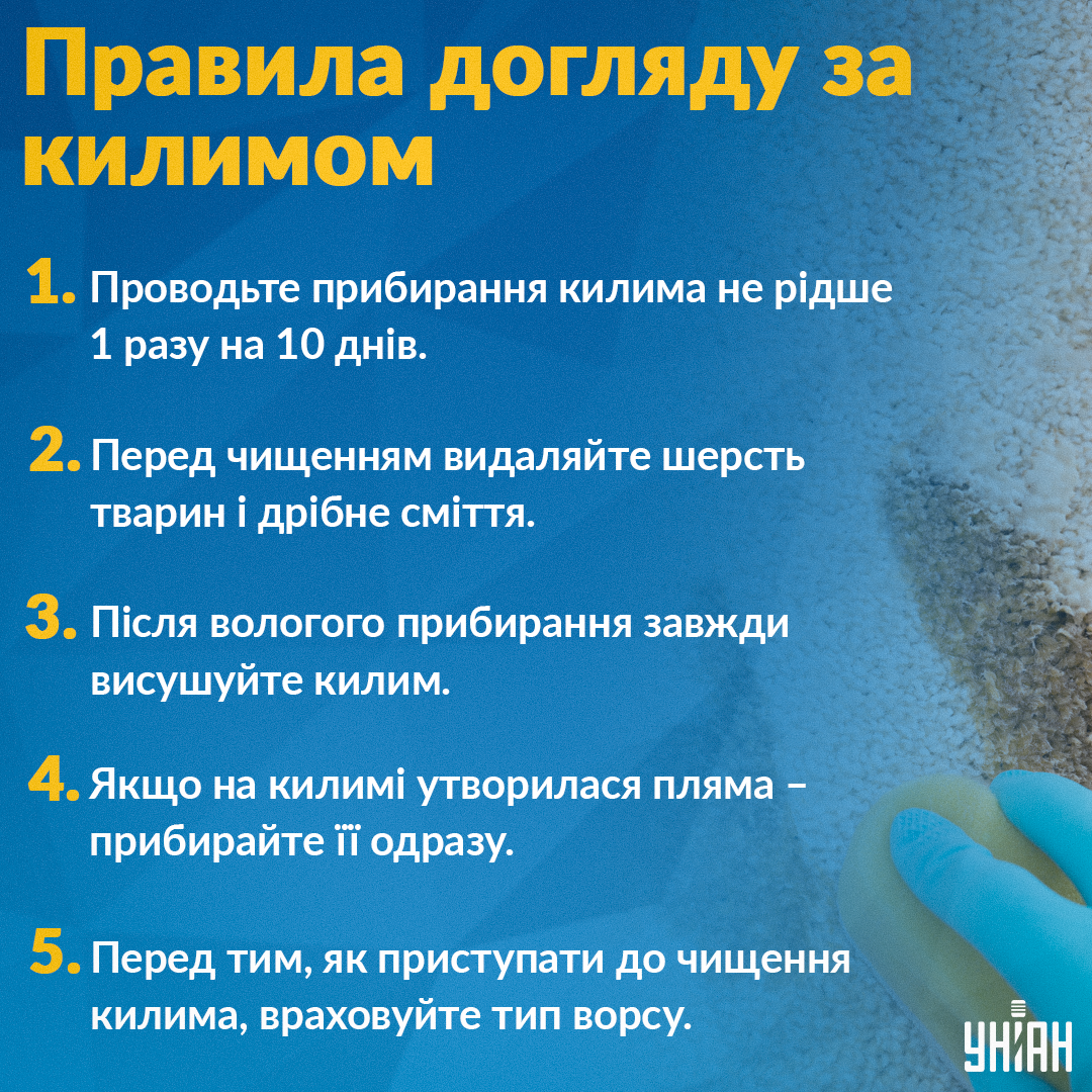Перш, ніж починати прибирання, потрібно звертати увагу на матеріал, з якого зроблений килим: