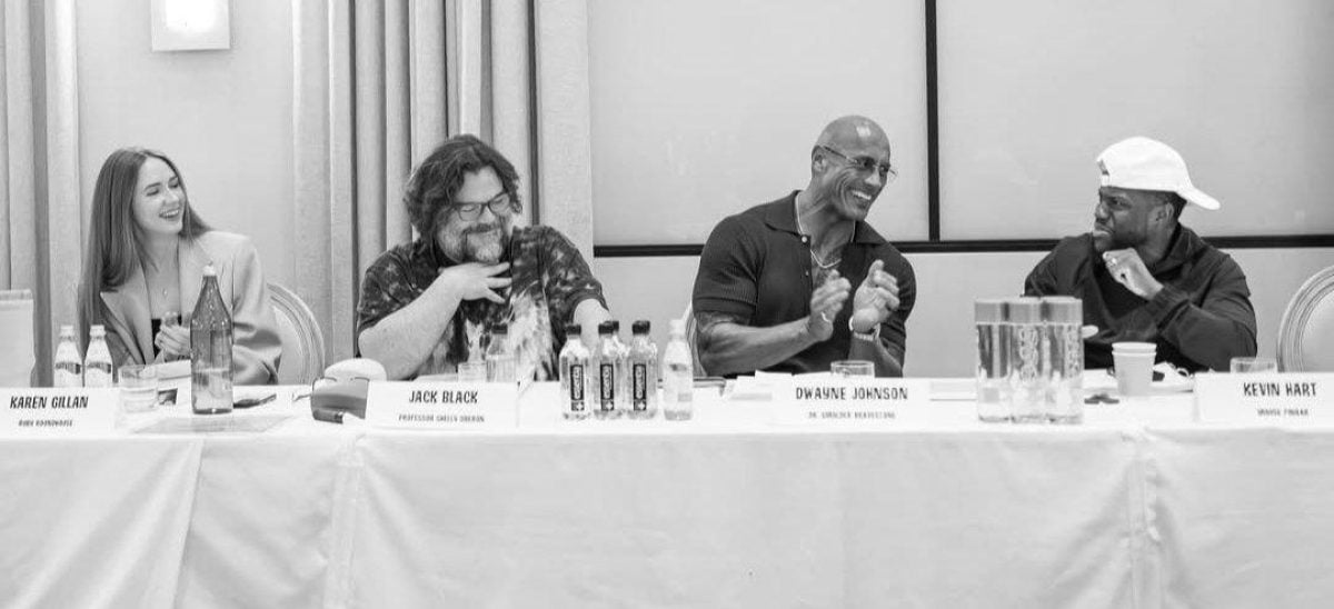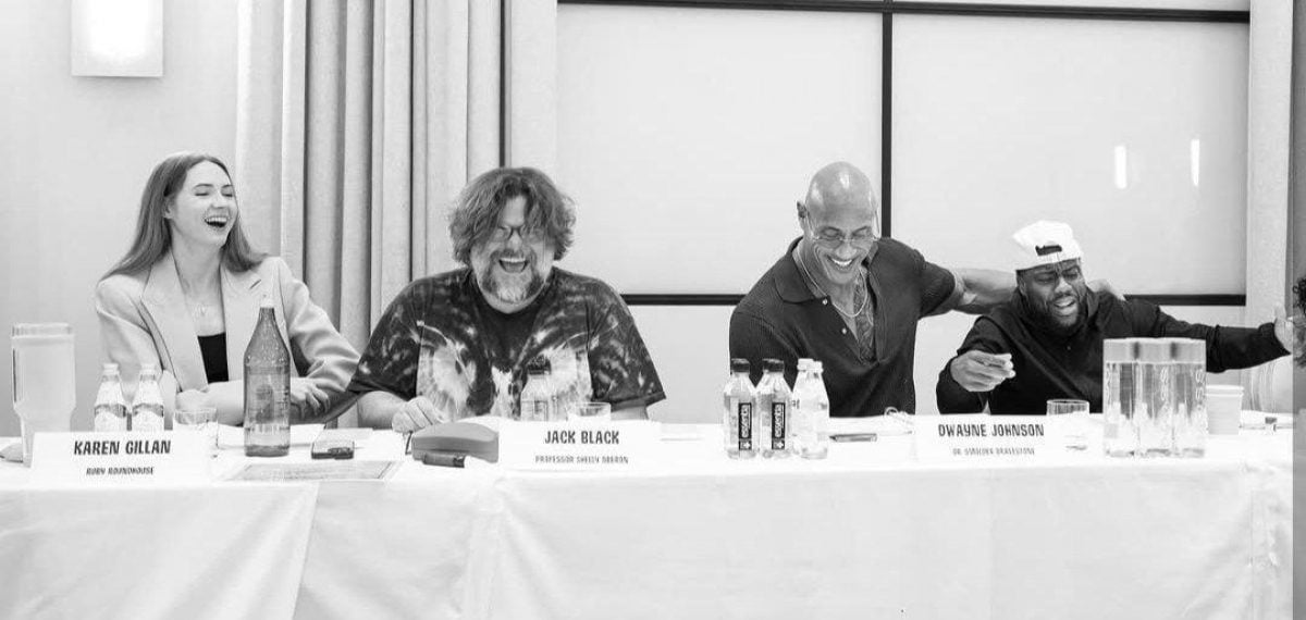 Також Джонсон поділився кадрами з офіційної зустрічі, де можна помітити й інших акторів франшизи - Джека Блека, Кевіна Гарта та Карен Ґіллан, які, очевидно, з'являться в третій частині.
