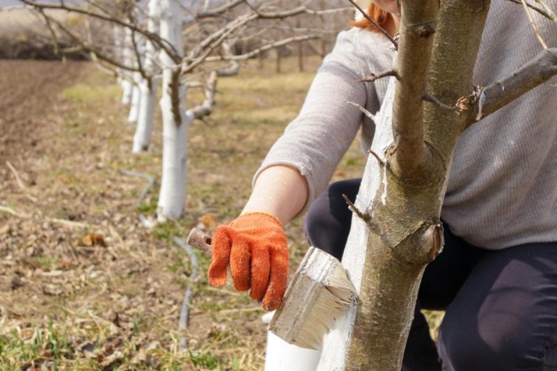 Весняна побілка захищає саджанці від надмірного сонячного світла.