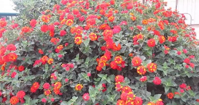 Лантана має яскраво-зелене, жорстке та яйцеподібне листя. Її варто регулярно обрізати, щоб стимулювати появу нових пагонів. На їх верхівках з’являться дрібні квіти, зібрані в кулясті суцвіття. При цьому квіти змінюють відтінок від світло-жовтого через помаранчевий до червоного.