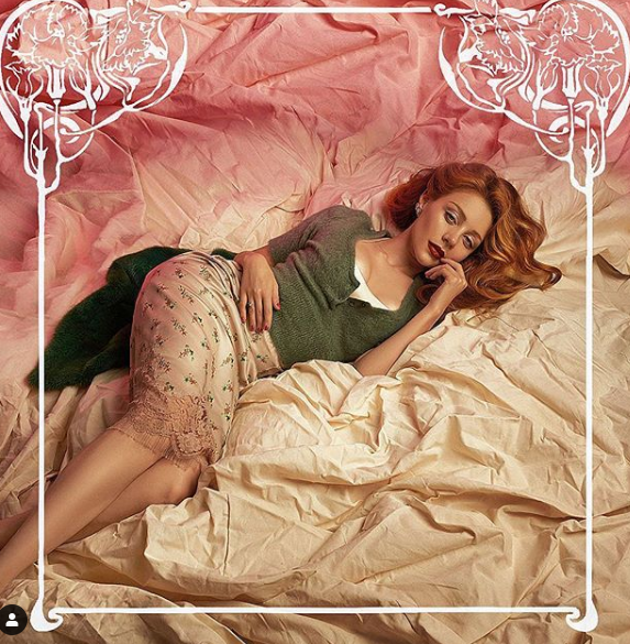 На знімку, який співачка розмістила в Instagram, вона лежить на ліжку, красиво зігнувшись. На співачці надіта бежева спідниця з мереживом і зелена кофточка.
