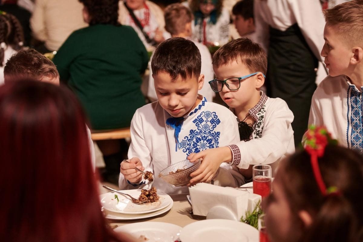 За 120-метровим різдвяним столом зібралися майже 500 учасників – опікунів, піклувальників та прийомні родини з різних регіонів України. Для цієї наймасштабнішої вечері приготували 150 кілограмів куті, 5 тисяч вареників – це кілька діб роботи сорока кухарів ресторанів "Мафія" та компанії з приготування корпоративних обідів "Разом".
