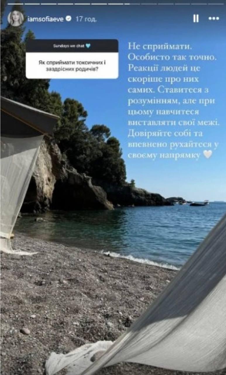 Та чи має вона таких родичів і, чи був подібний досвід виставляти власні кордони для рідних людей - Соня не зазначила.