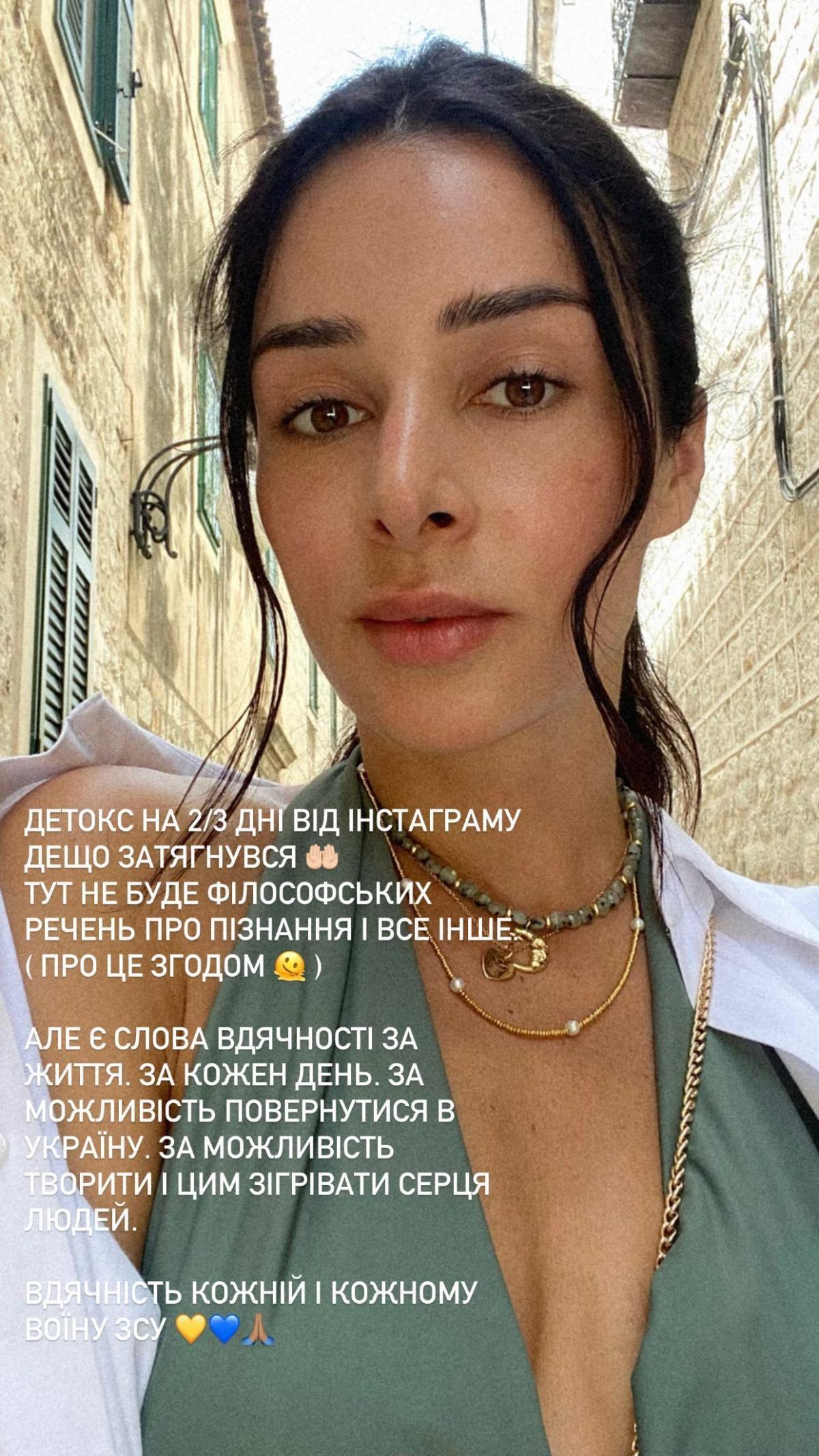 "Детокс на 2-3 дні від Instagram дещо затягнувся. Тут не буде філософських пропозицій про пізнання і всього іншого (про це пізніше). Але є слова подяки за життя, за кожен день, за можливість повернутися в Україну, за можливість творити і цим зігрівати серця людей. Подяка кожній і кожному воїну ЗСУ", - повідомила Огнєвіч.