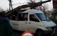 Під Києвом дерево впало на маршрутку з пасажирами (відео)