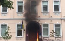 У центрі Києва в офіс омбудсмена метнули "коктейль Молотова" (відео)