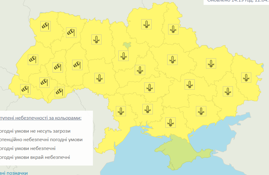 "23 квітня в західних областях пориви вітру 15-20 м/с", - йдеться в повідомленні.
