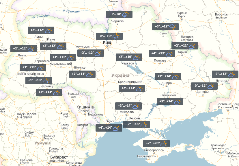 Читайте такожНа автошляхах України місцями пройдуть дощі, на півдні температура до +16°