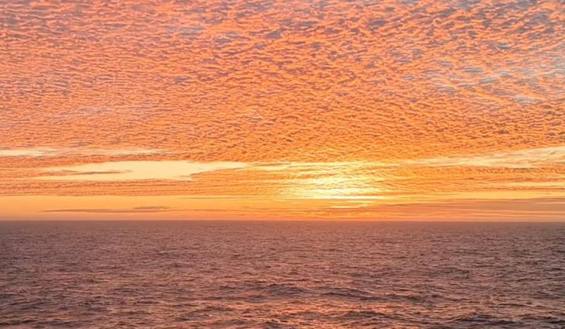 Українські науковці, які перебувають в міжострівному морі Скоша, що у південній частині Атлантичного океану, показали незвичайне явище, яке створюють висококупчасті хмари на заході Сонця.