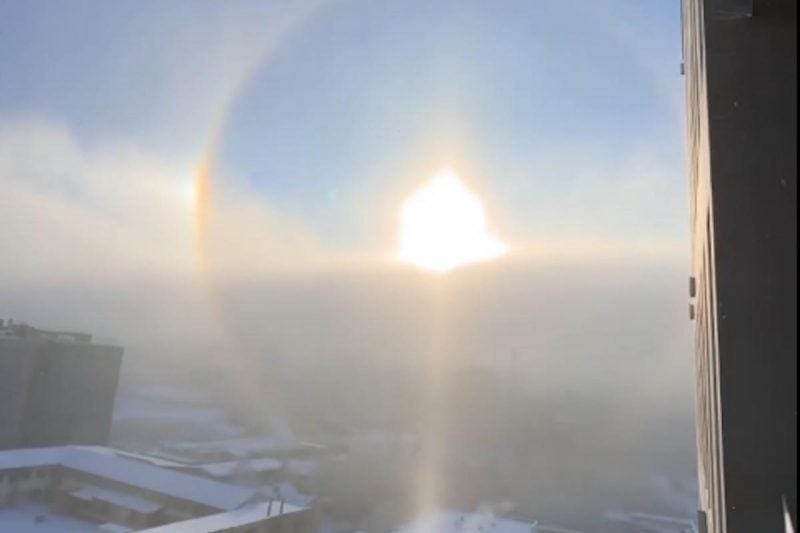 У Львові сьогодні зафіксували рідкісне природне явище - оптичний ефект, відомий як "сонячне гало". Про це повідомляють львів'яни у соцмережах.