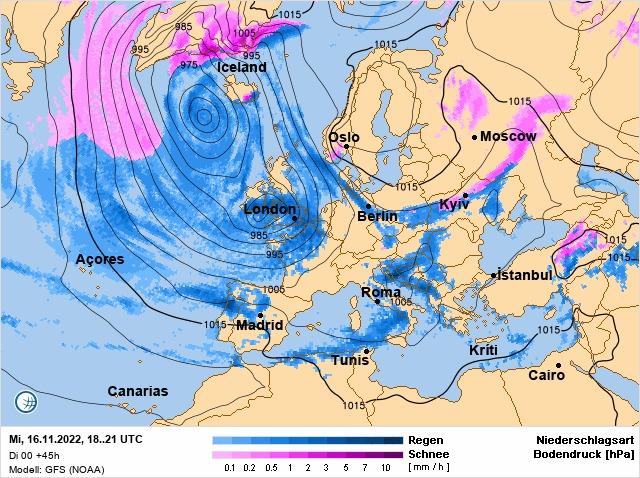 Завтра, 16-го листопада, на півночі та північному сході України є ймовірність мокрого снігу. На решті території нашої країни ймовірний дощ.