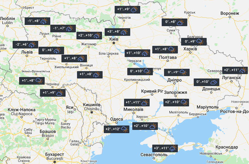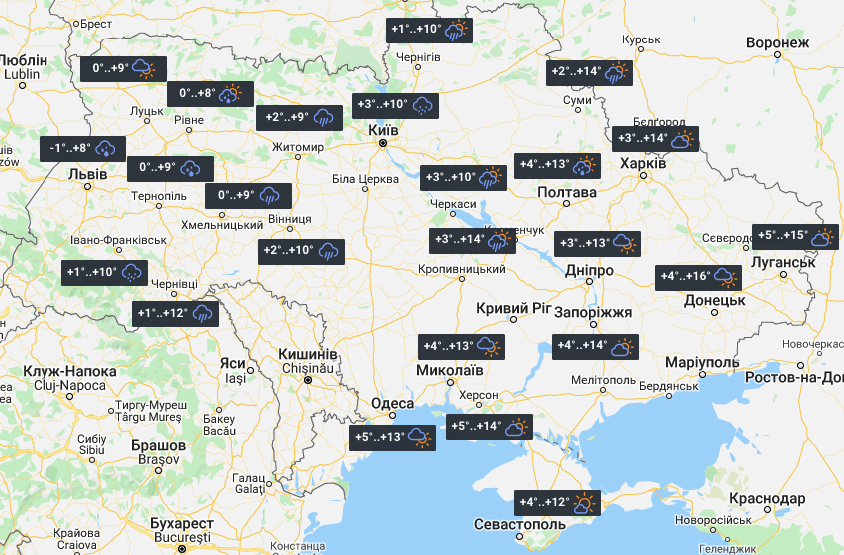 У середу значно потеплішає: у західних регіонах температура сягне по-справжньому весняних +16°. На Львівщині продовжаться дощі, які поширяться і на Тернопільщину. На решті території час від часу буде показуватися сонце.
