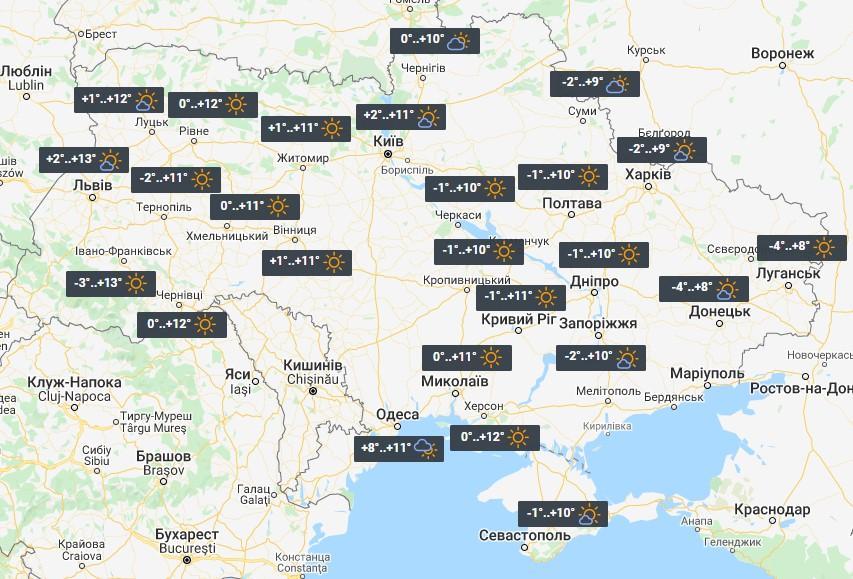 - У Харкові - практично безхмарно, температура вночі -2°, вдень +9°.