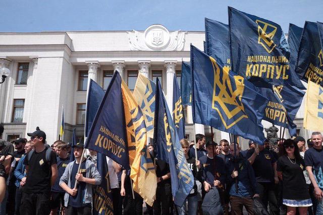 Про це стало відомо з трансляції сьогоднішніх подій під Верховною Радою на каналі політичної партії «Національний Корпус» в YouTube.