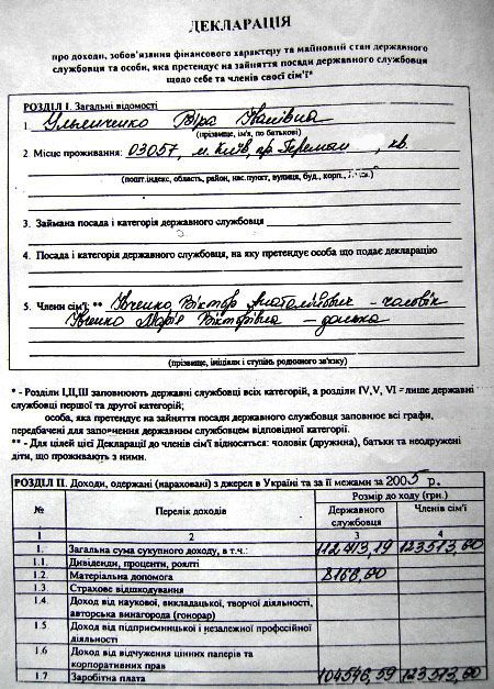 Губернатор Київської області Віра Іванівна Ульянченко передала до "Української правди" свою декларацію про доходи.